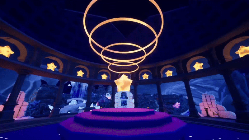 Hand drawn in PhotoShop to emulate a star chart for an otherworldly effect, clouds slowly rotate and stars use a blown out version of the same texture that pans to make it seem like the stars are twinkling.